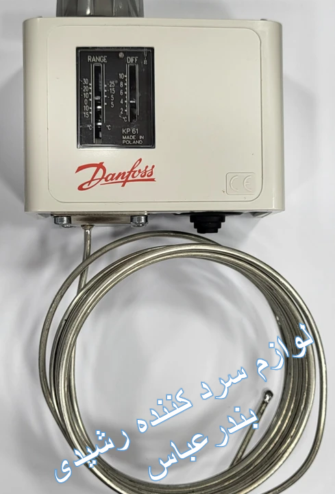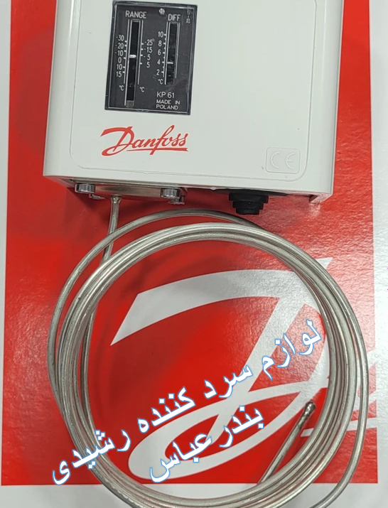 ترموستات آنتی فریز دانفوس KP61 یک ترموستات تک مرحله محصول شرکت Danfoss لهستان با عنوان آنتی فریز اصلی دانفوس شناخته میشود ، این ترموستات جزء سویچ های الکترو مکانیکی با سنسور SPDT میباشد ،(تعریف SPDT یعنی مخفف Single Pole Double Throw یعنی کنتاکتور تک پل با دو مسیر خروجی که بیشتر برای تغییر حالت استفاده میشود) این ترموستات جزئ دقیق ترین آنتی فریز های با دقت بالا و سرعت پاسخگوی بسیار دانفوس می باشد رنج دمای کاری این آنتی فریز 30 – تا 15 + می باشد ، با توجه به بازه دمایی کارکرد عنوان شده ،مناسب برای استفاده در چیلرهای تراکمی ؛ سردخانهای زیر صفر و بالا صفر به عنوان ترموستات محیطی دنباله دار کمکی به منظور جلوگیری از یخ زدگی در کویل های سرمایشی استفاده میگردد، برد های مکانیکی و الکترونیکی این ترموستات های KP 61 دانفوس به شدت دارای دوام و طول عمر بالا بوده و در اثر عملکرد زیاد نسبت به تغییرات دمایی پی در پی به هیچ عنوان دچار اختلال و از دست دادن دقت خود نمی شوند.